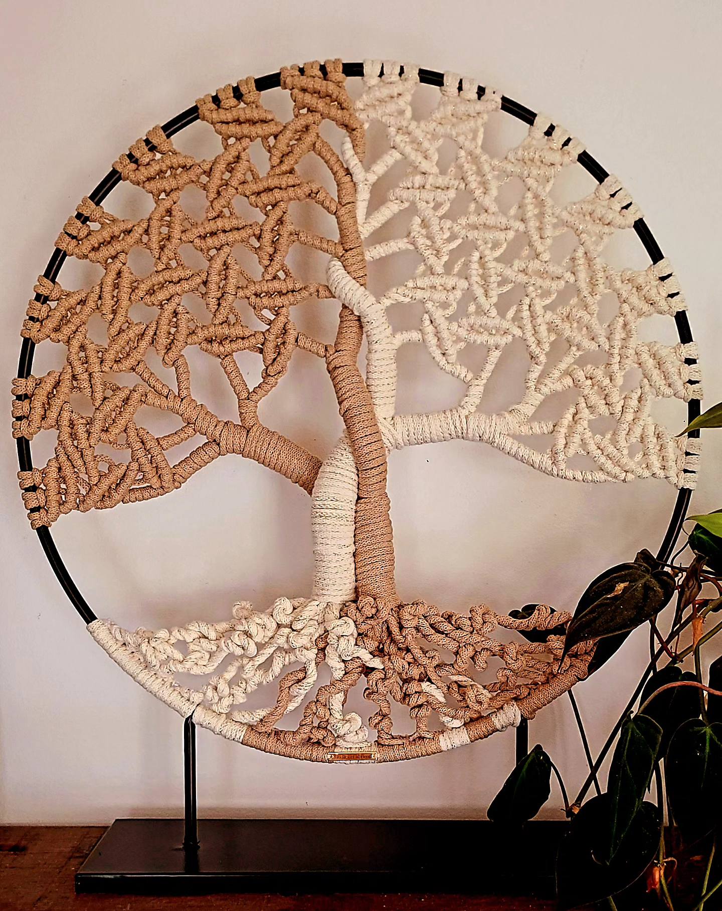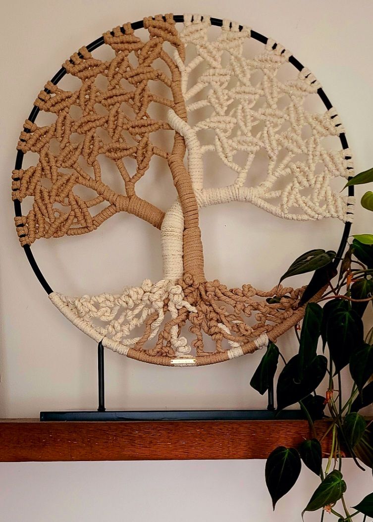 Découvrez l’Arbre de vie NOUS, une décoration en macramé contemporain alliant deux teintes naturelles pour symboliser l’union et l’équilibre.