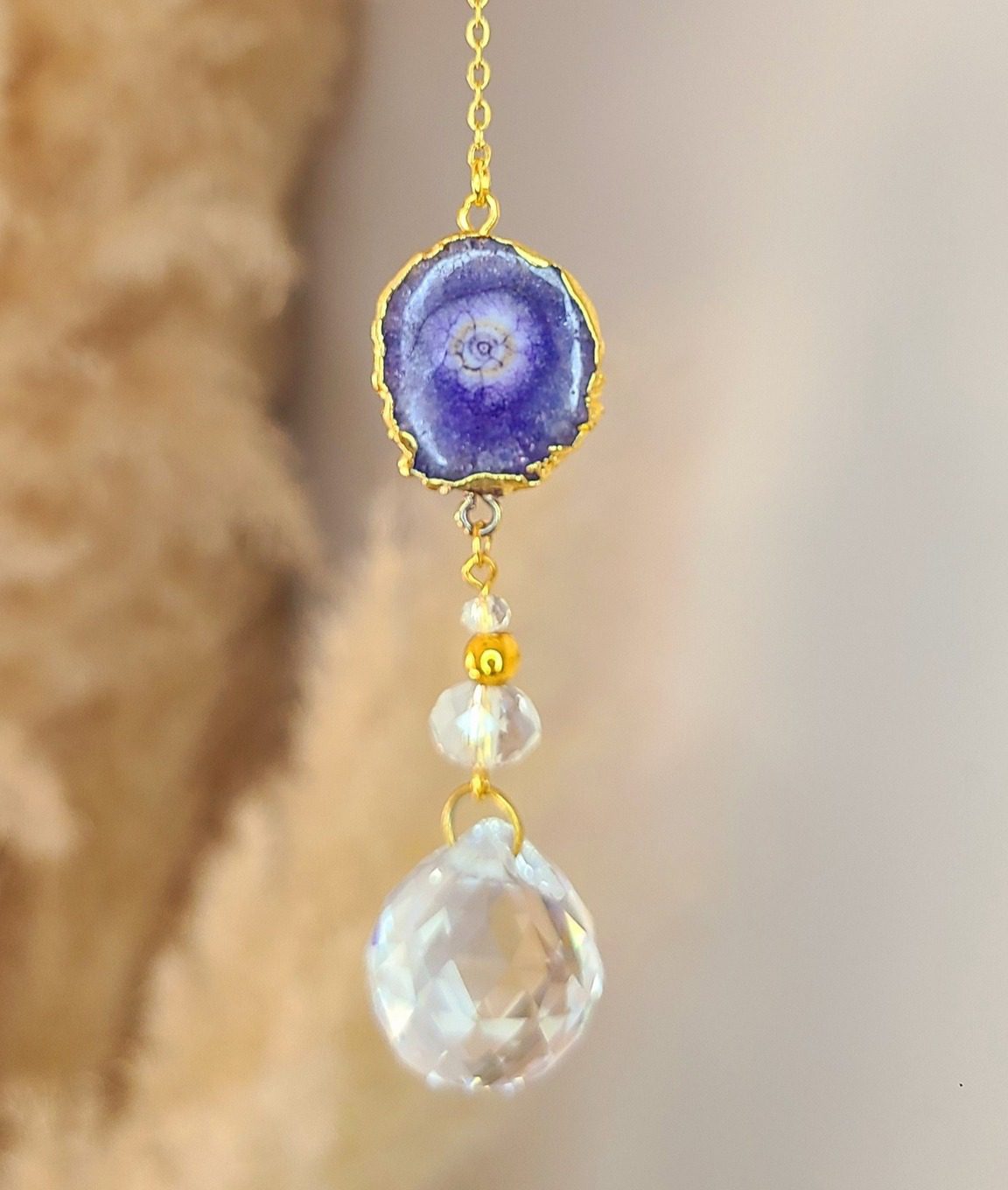 Apportez un éclat apaisant et des énergies positives dans votre intérieur avec cet attrape-soleil et sa druze de quartz solaire teinté
