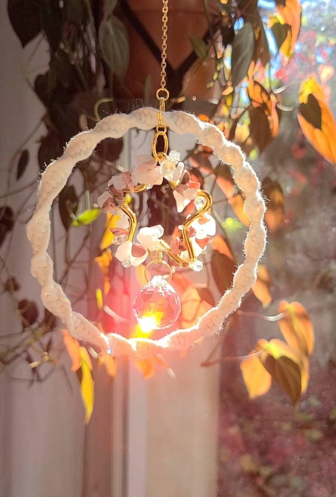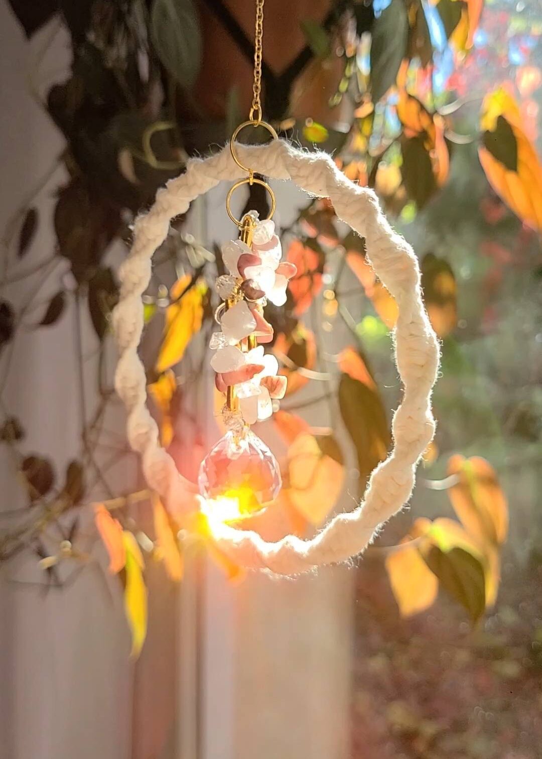 Suspendue dans la lumière, elle fait danser les éclats du jour et rappelle que chaque rayon porte une présence.