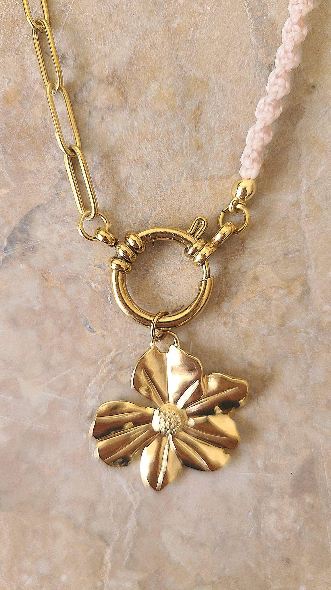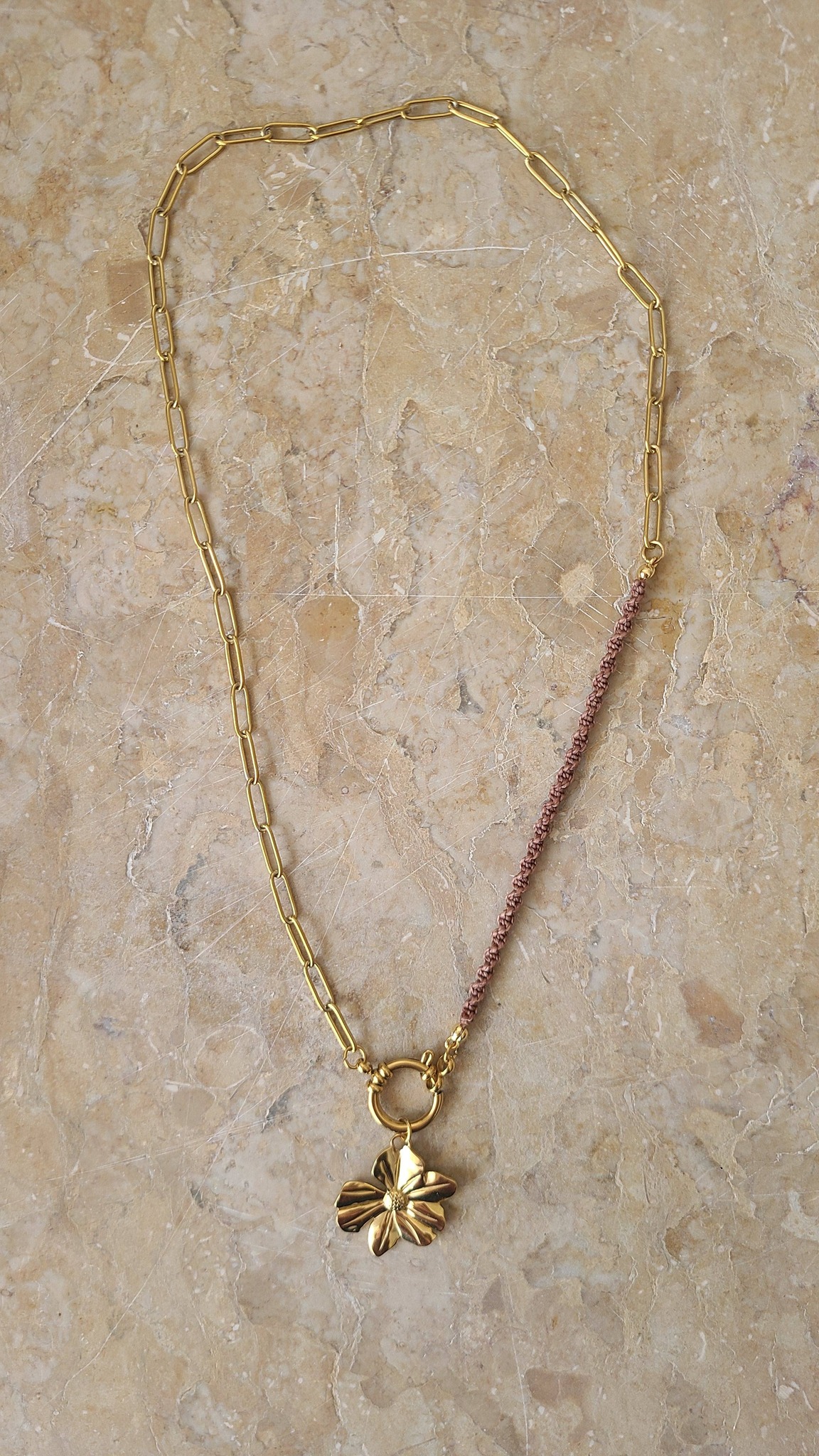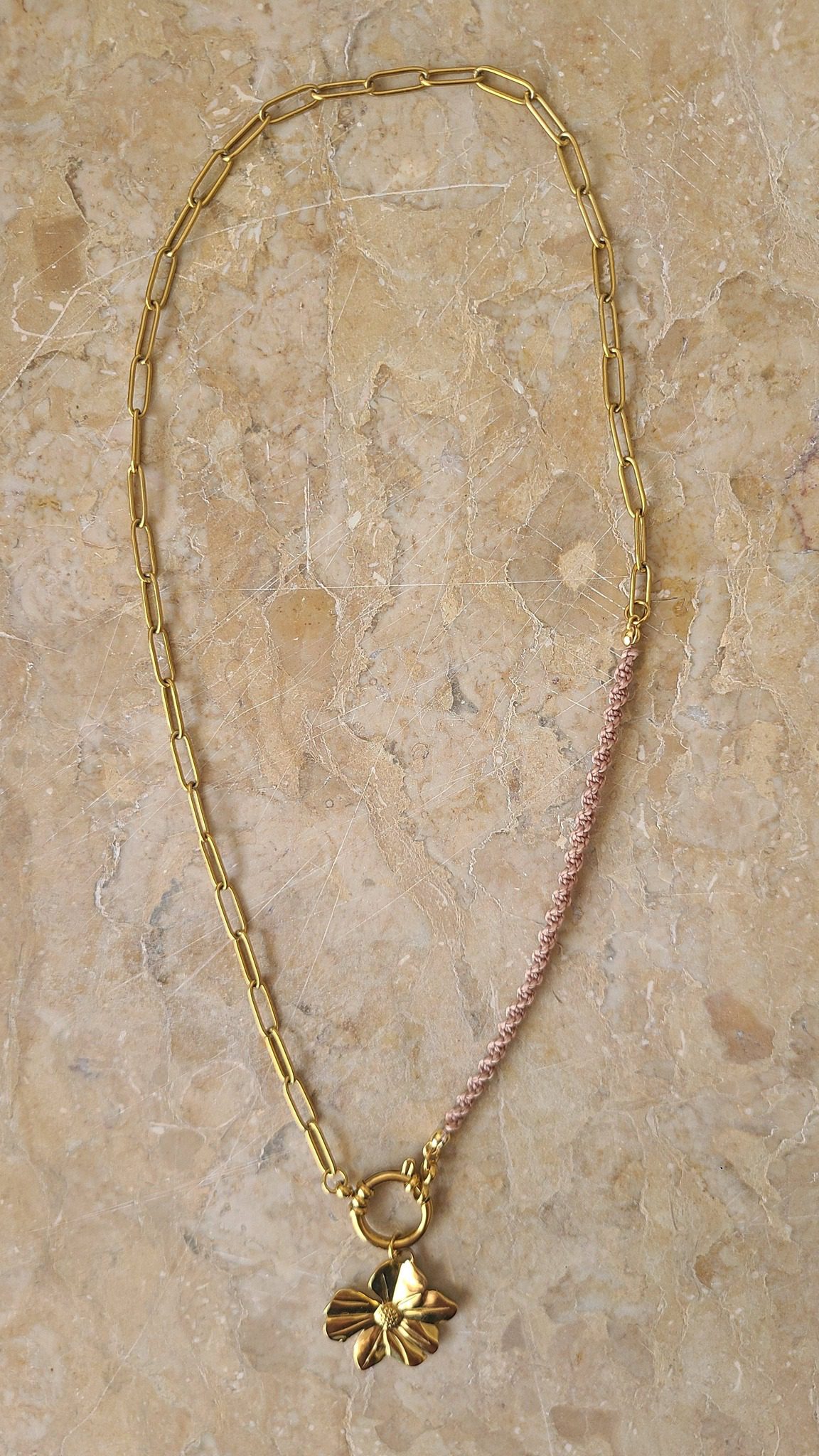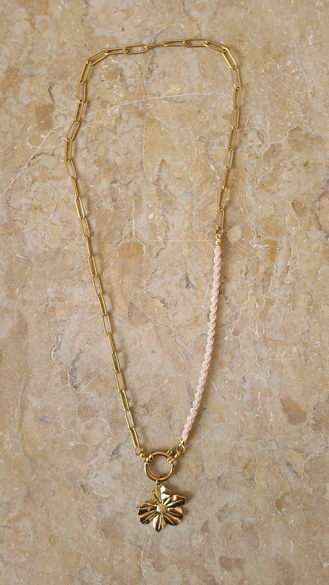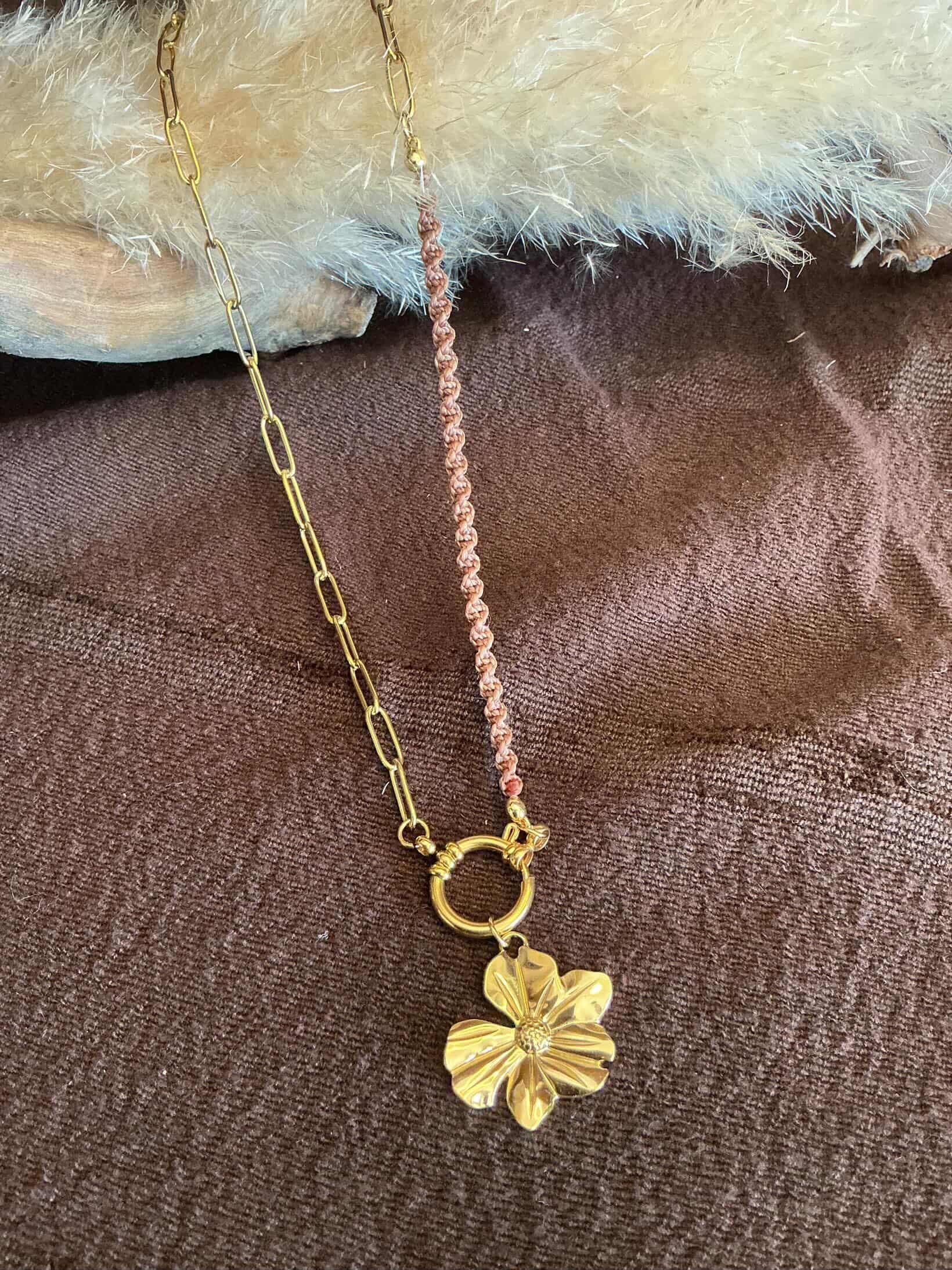 Collier micromacramé et chaîne de la Collection Equilibre, édition limitée. Une pièce raffinée, artisanale, pensée pour porter intention et élégance au quotidien.