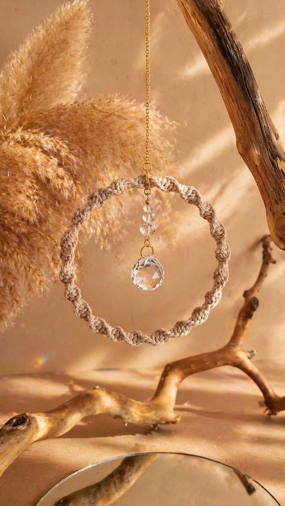 Ce modèle peut s’offrir ou s’installer près d’une fenêtre ou baie vitrée pour faire danser la lumière, au dessus d’un bureau comme ancrage doux, dans un coin de méditation ou de lecture pour ajouter chaleur et poésie.