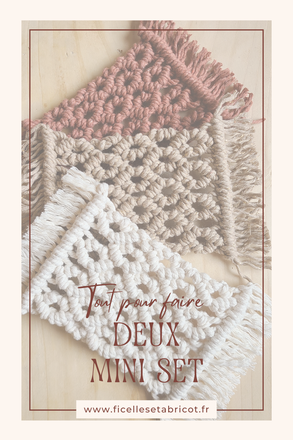 Je vous fournis également mes explications avec des photos, pour vous accompagner pas à pas dans la réalisation des noeuds de base et du design du macramé.